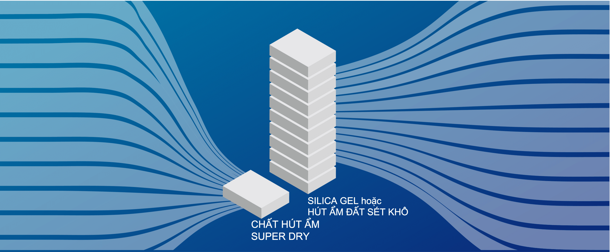 Khả năng hấp thụ độ ẩm của chất hút ẩm SUPER DRY cao gấp 10 lần silica gel và đất sét, kết hợp với phạm vi nhiệt độ hoạt động rộng. Chất hút ẩm SUPER DRY là giải pháp vượt trội để chống ẩm cho vận chuyển đóng container, đóng gói bao bì hoặc hộp carton, giúp bảo vệ hàng hóa tránh rủi ro bị thiệt hại do độ ẩm.