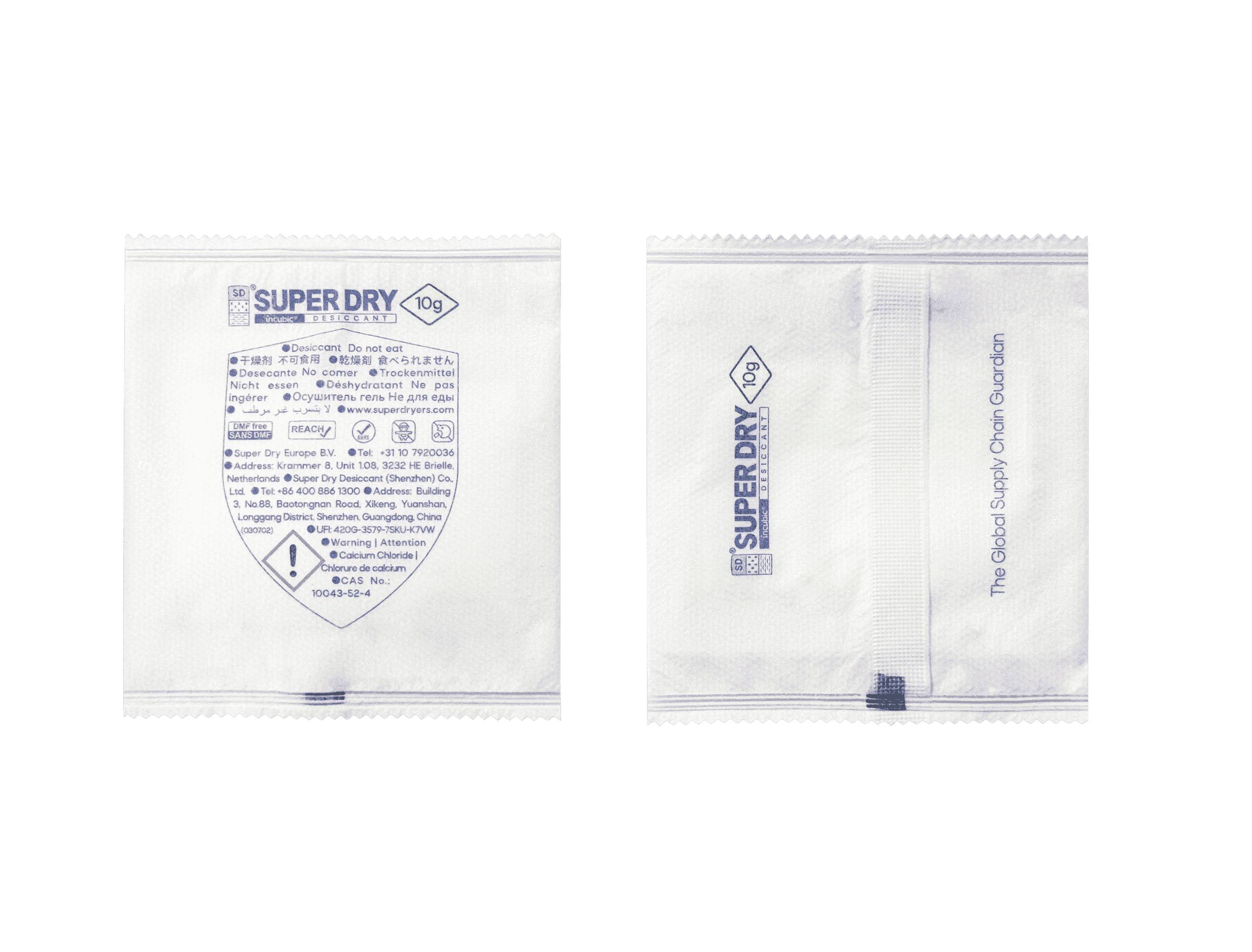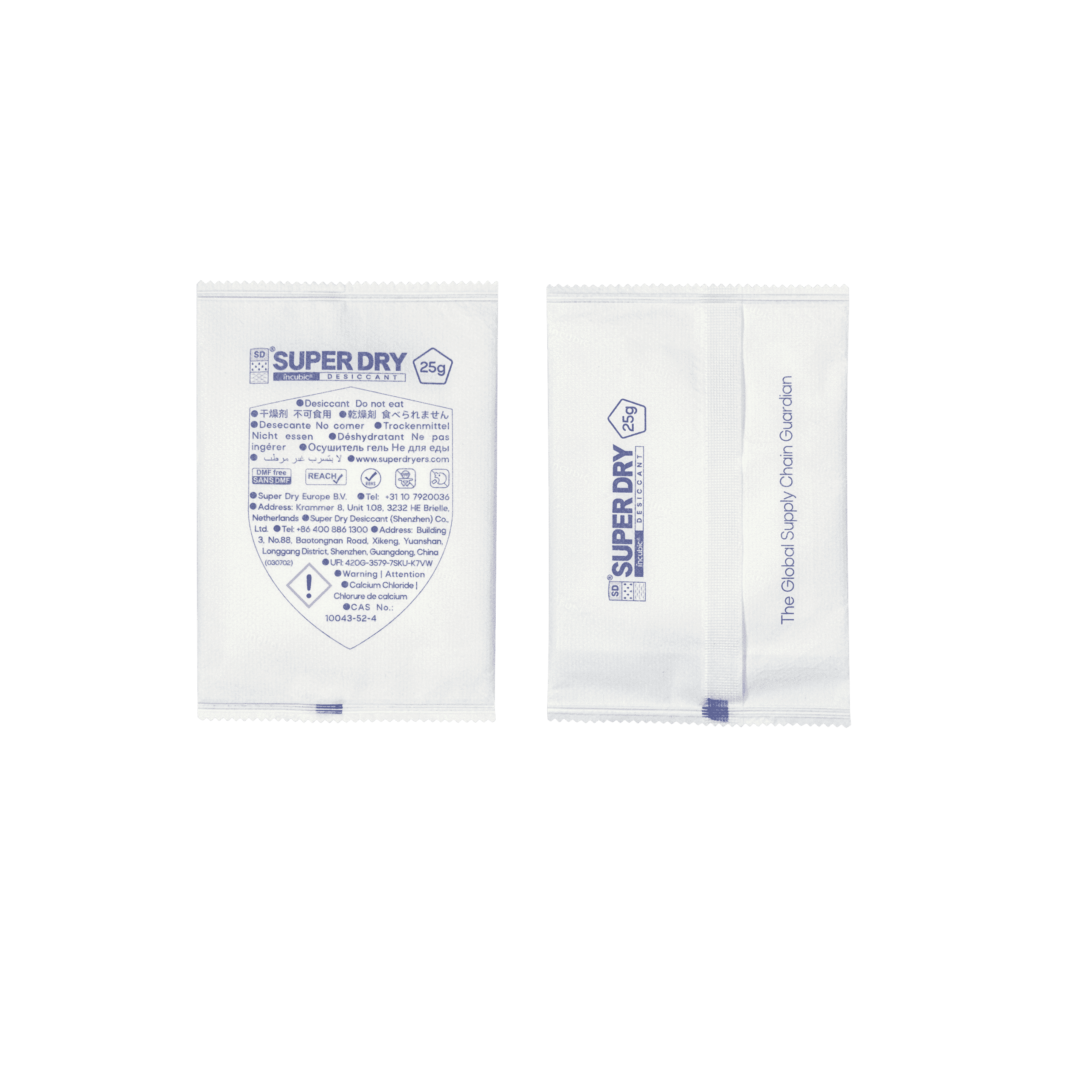 SUPER DRY in-box desiccants are engineered for application in transport and product packaging, like cartons, boxes, or poly bags.