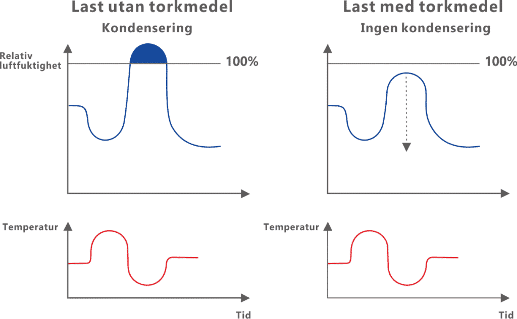 För att användningen av torkmedel ska vara effektiv, måste förebyggande åtgärder mot fuktskador integreras i leveranskedjan med fuktkontroll som en integrerad del av varje företags kvalitetssystem, som täcker varje steg från materialmottagning till lastning och frakt av produkterna för att minimera fuktkällor på alla nivåer. Etablering av processer och upprätthållande av regler är avgörande för framgång.